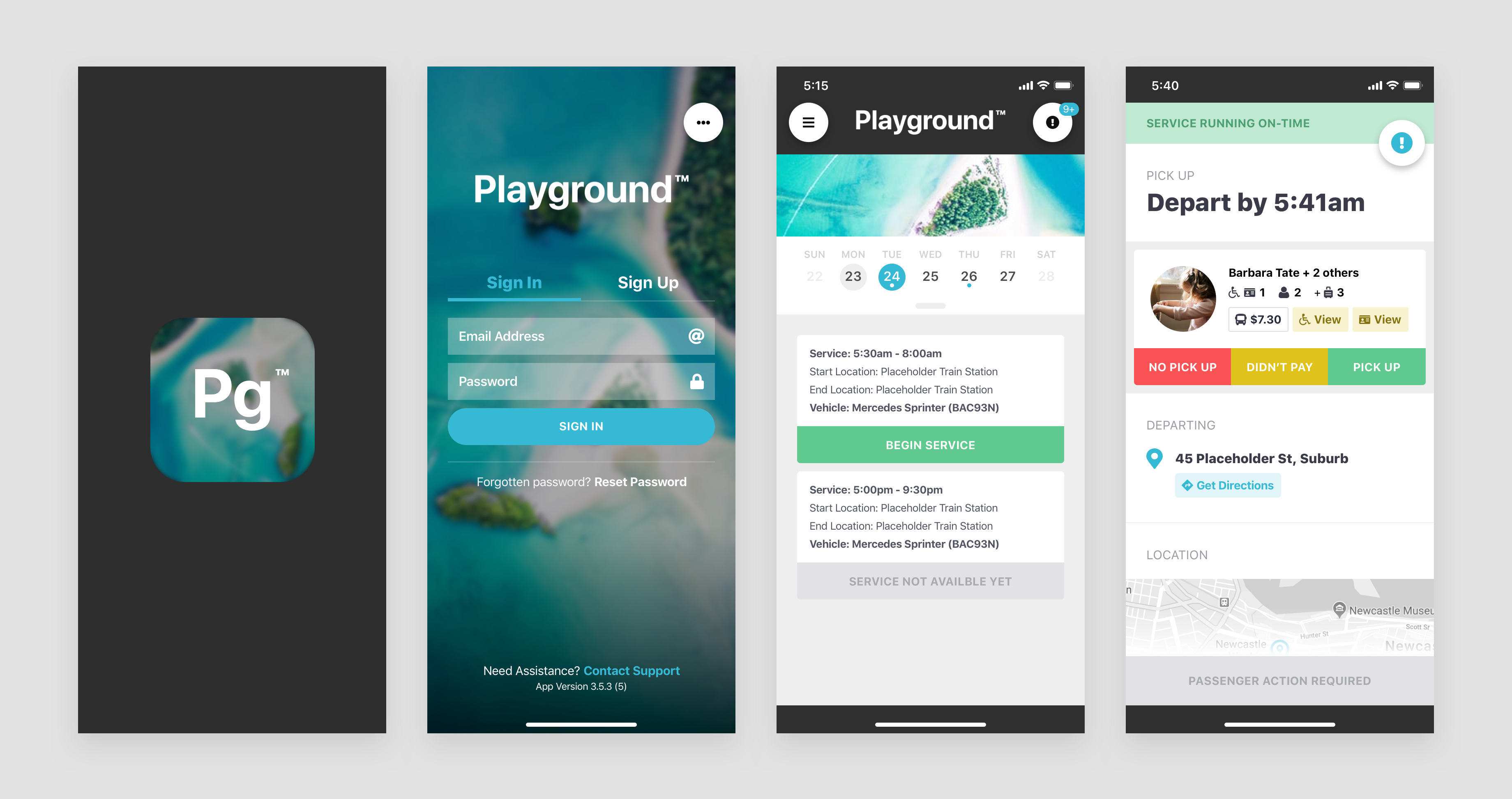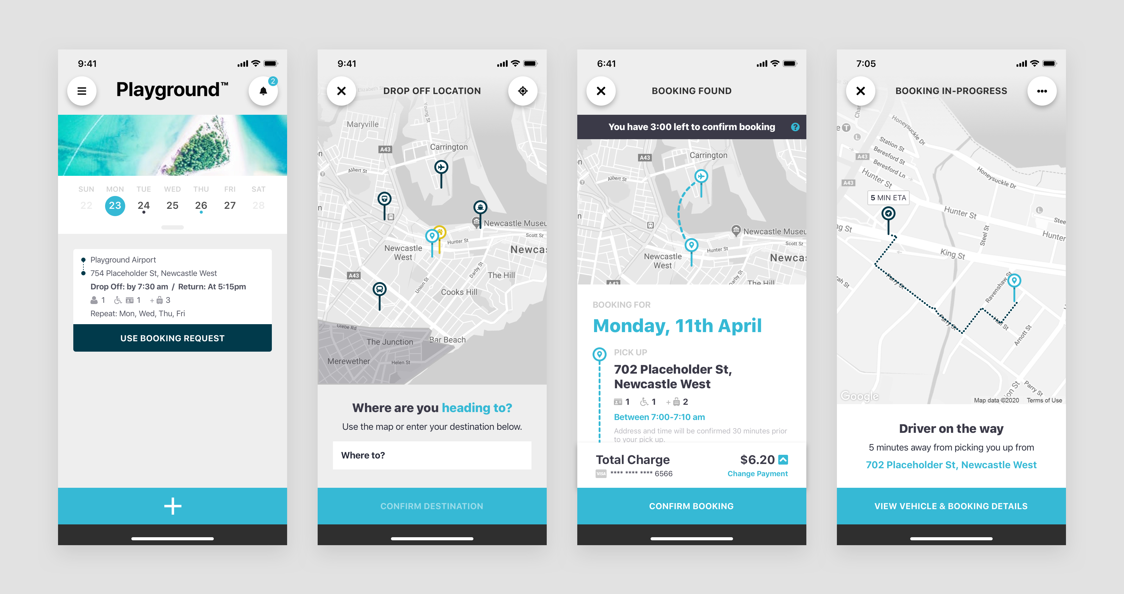 Then with a design of the live app and an already growing list of clients who had their own white-label versions, whether it was On-Demand Carpool or On-Demand Public Transport, I worked with the Sales team to create a system where they could show potential clients what their own branded app would look like. Leveraging the power of symbols in Sketch, like a design system, all that was required was three of their branding colour (primary, secondary and accent), their logo and a location for the map component. With those elements, I could quickly create a ready-to-go design that could be included in sales pitches and proposals. The plan was to turn this into a tool that removed the Designer and potentially lived on the Liftango website for prospects to use themselves.