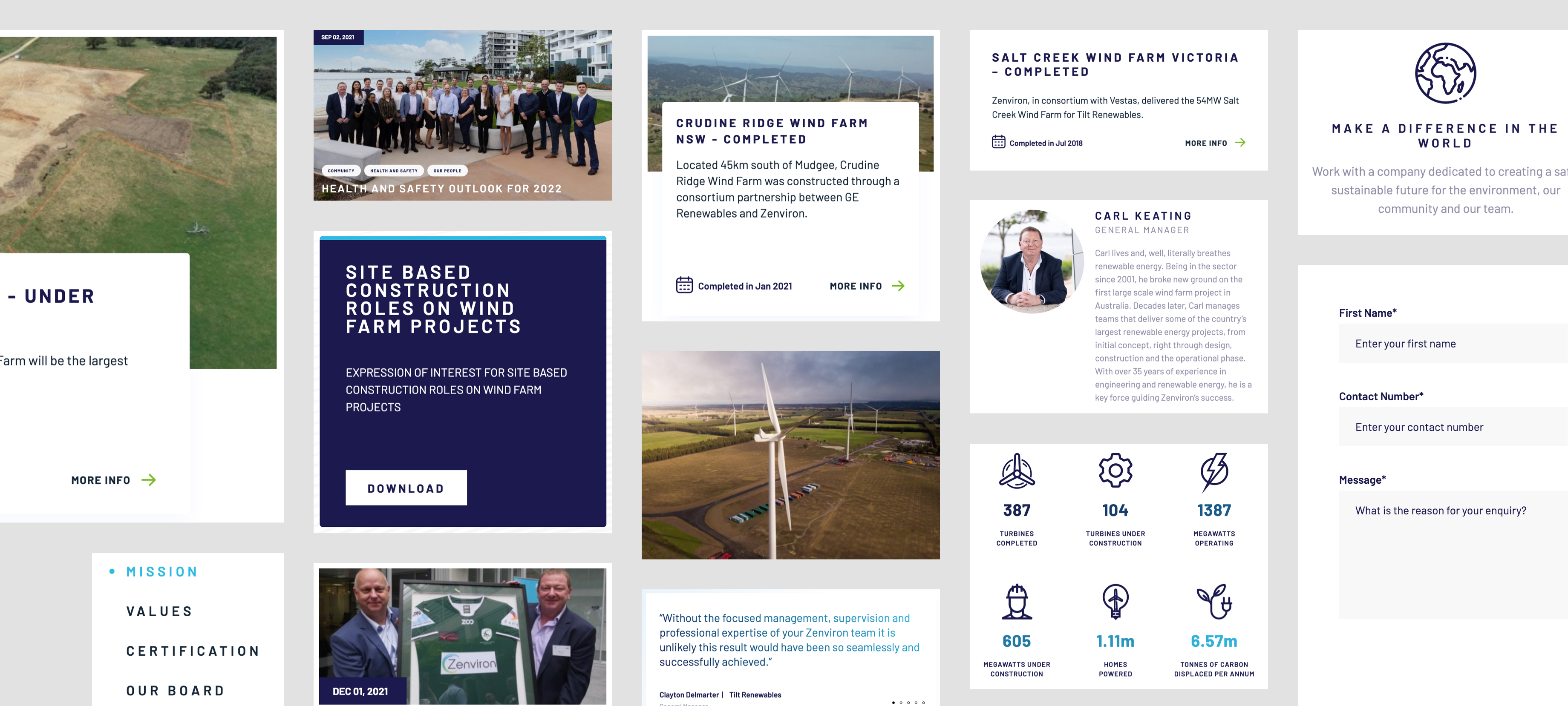 From the kickoff workshop we moved into design. Using Figma, a home page design for both desktop and mobile was first created to set a look and feel for the rest of the site. With an initial home design a home page presentation took place to hear from the client and showcase where we had arrived with the brief. The client supplied feedback with changes being made before a final sign off was received. Continuing the design involved the creation of the other pages including all remaining modules and sections. A few rounds of revisions followed to fine tune the content but with the design approved a design to development handover took place.